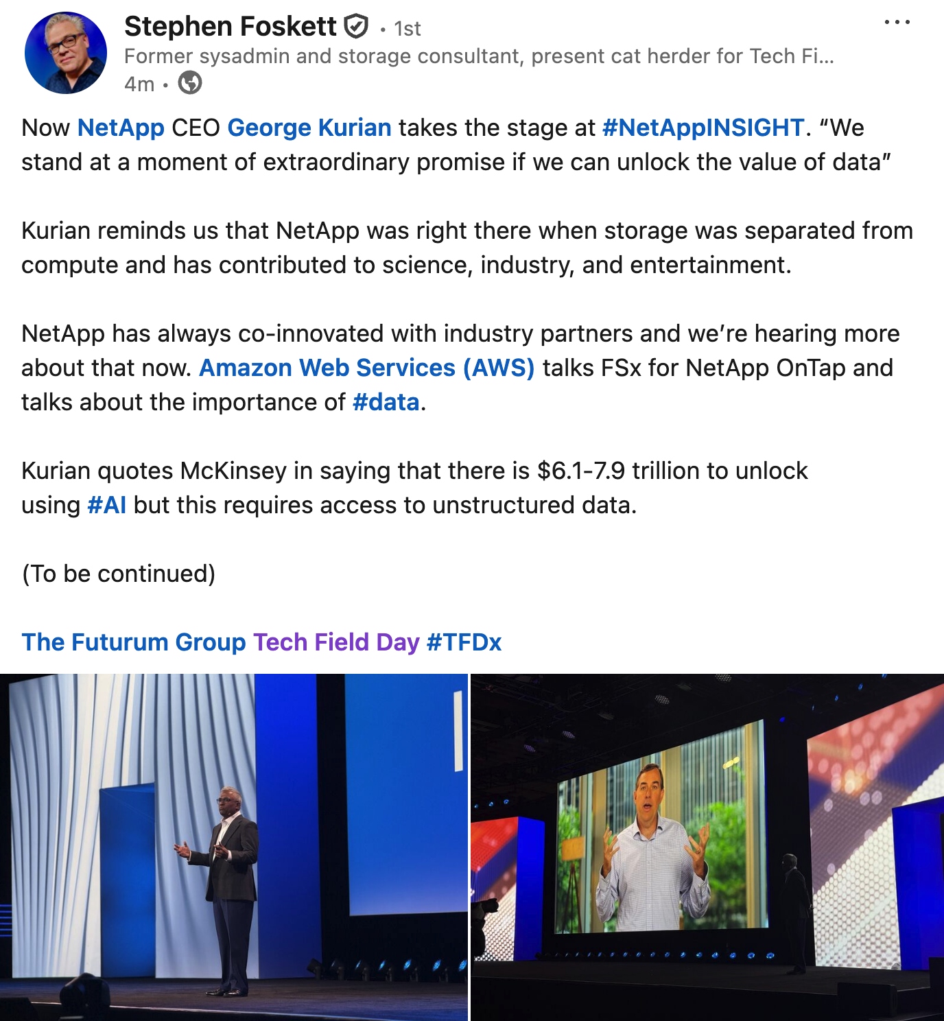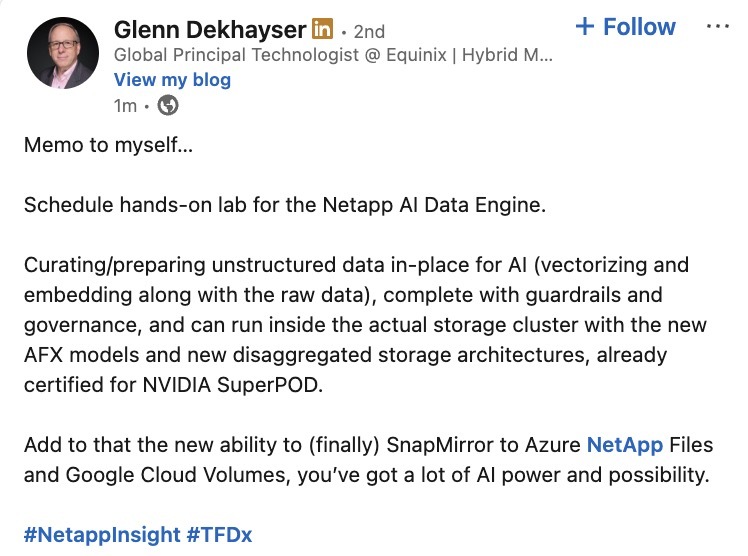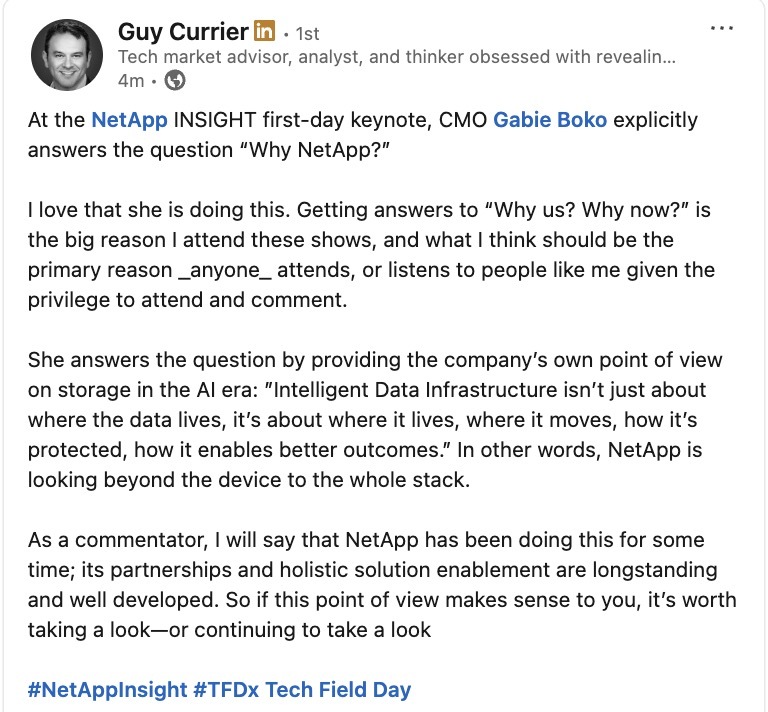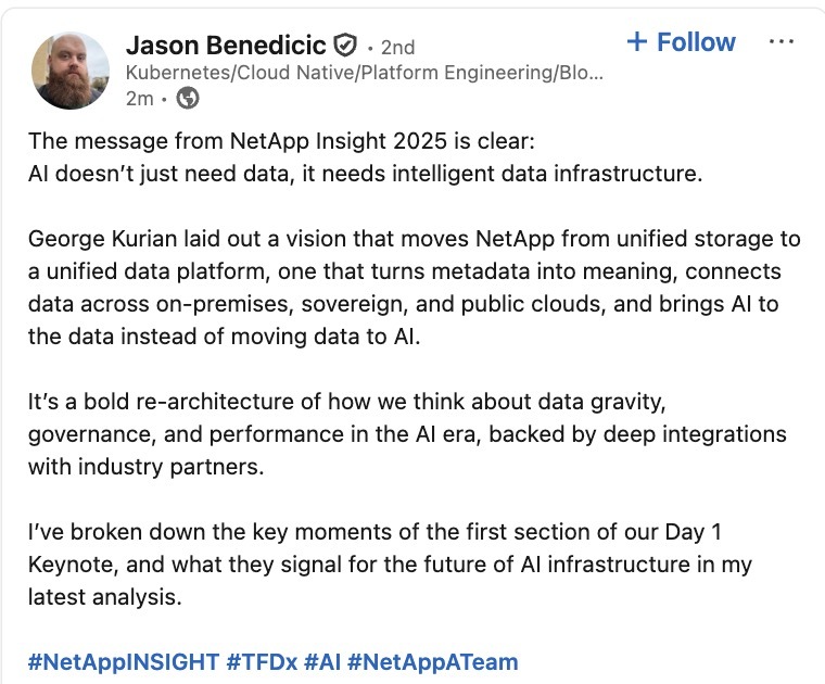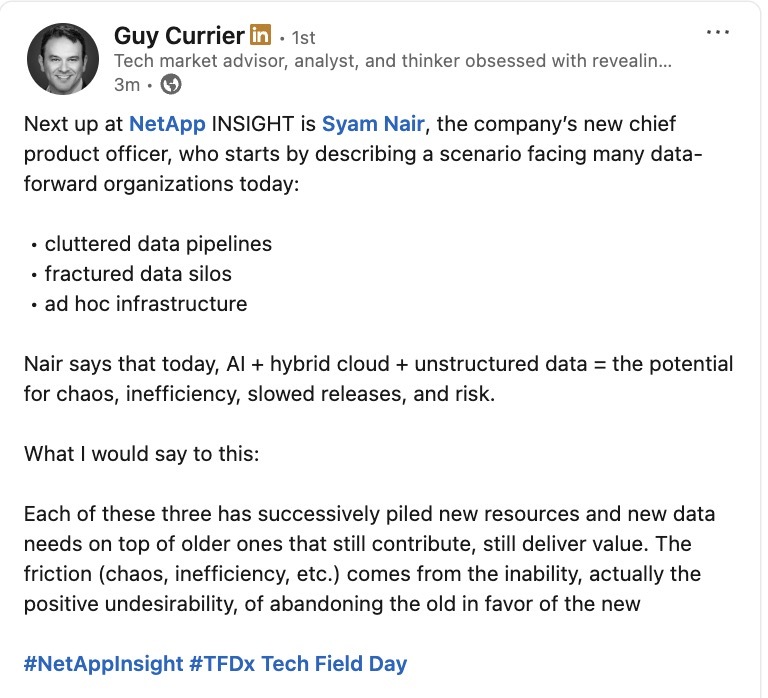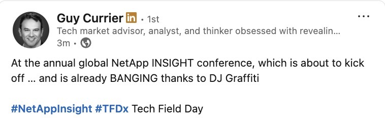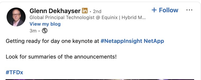 Follow along as the #TFDx delegates report from the #NetAppINSIGHT keynote with our "reverse" live blog! We're collecting the best social media posts here!techfieldday.com/2025/tech-fi…