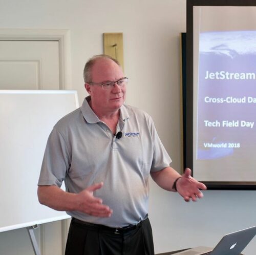 Rich Petersen, Co-Founder of JetStream Software, introduces the delegates to the company’s cross-cloud data management solution. He outlines how the company has advanced their product roadmap from cloud acceleration, to migration, and now embracing data protection.