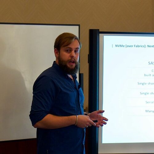 Anton Kolomyeytsev, CTO, Chief Architect, and Co-Founder, and Stephen Foskett lead a roundtable with the Storage Field Day delegates, discussing the latest in the company’s and industry’s NVMe development.