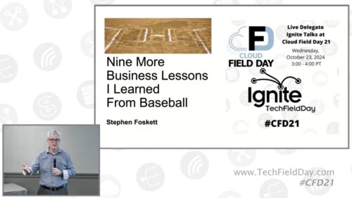 Stephen Foskett revisits his original Ignite talk from nine years ago, where he shared nine business lessons he learned from baseball, and now presents nine more lessons with a more seasoned perspective. Reflecting on his earlier optimism, Foskett acknowledges that his new insights are perhaps more cynical, shaped by years of experience. He begins by […]