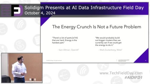 In the presentation by Solidigm at AI Data Infrastructure Field Day 1, Manzur Rahman emphasized the critical issue of energy consumption in AI and data infrastructure. He referenced quotes from industry leaders like Sam Altman and Mark Zuckerberg, highlighting the significant challenge energy poses in scaling AI operations. Rahman discussed findings from white papers by […]