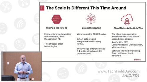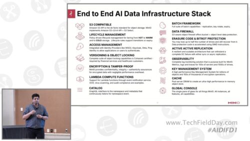 Infinidat’s presentation at AI Data Infrastructure Field Day 1, led by Bill Basinas, Sr. Director of Product Marketing, focused on their latest storage solutions, the InfiniBox G4 and InfiniBox SSA. Basinas highlighted the unique software-defined architecture of Infinidat’s products, which leverage commodity hardware components to deliver high performance and resilience. The core of their technology, […]
